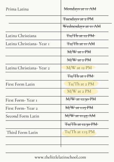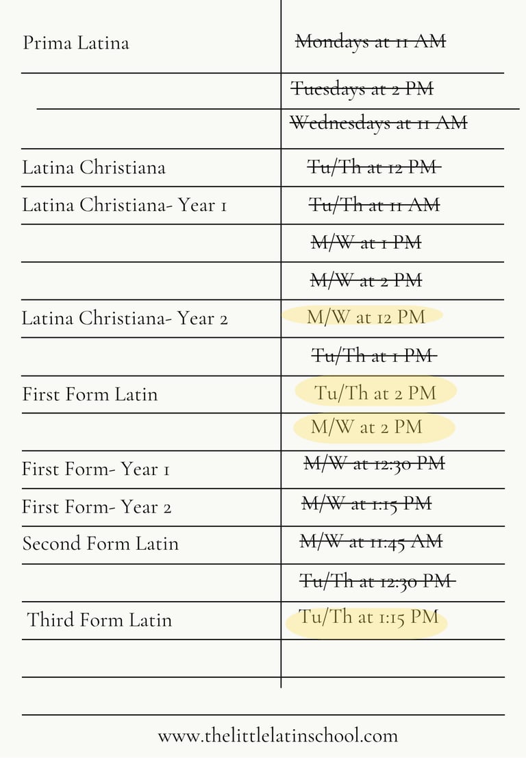 Latina Christiana and the Forms are $36/mo. for 9 months. These classes meet twice a week for 45 minutes.